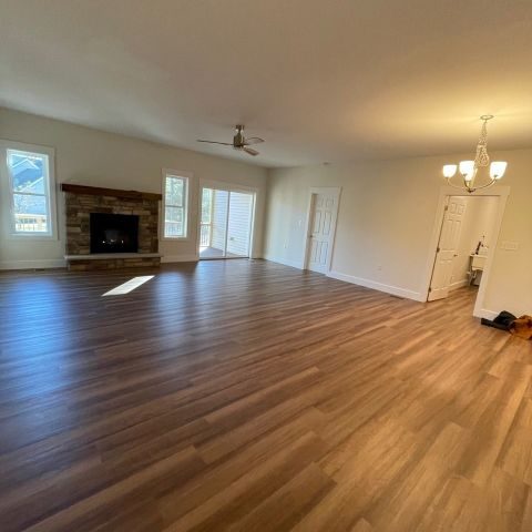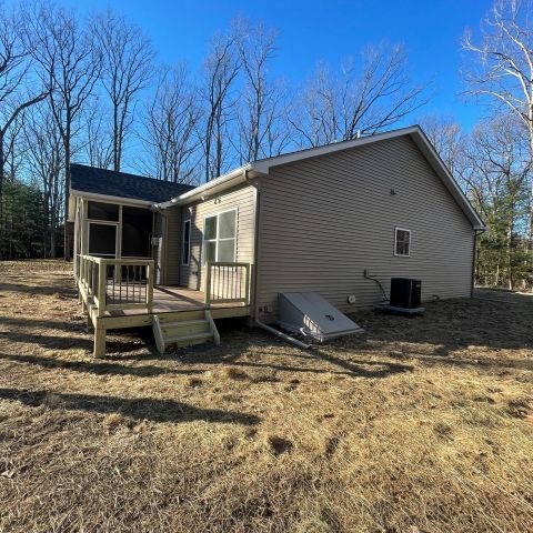 The Birchwood offers an elegant, maintenance-free exterior with a decorative oval window, and shingled gables with a large covered porch. An open floor plan with a spacious kitchen with ample cabinets and breakfast bar. The great room with a gas fireplace. Entry hall with large coat closet and bench area. The primary suite includes an ensuite bath with a large walk-in shower. A utility room for washer and dryer and additional storage, as well as a covered deck for outdoor entertainment.